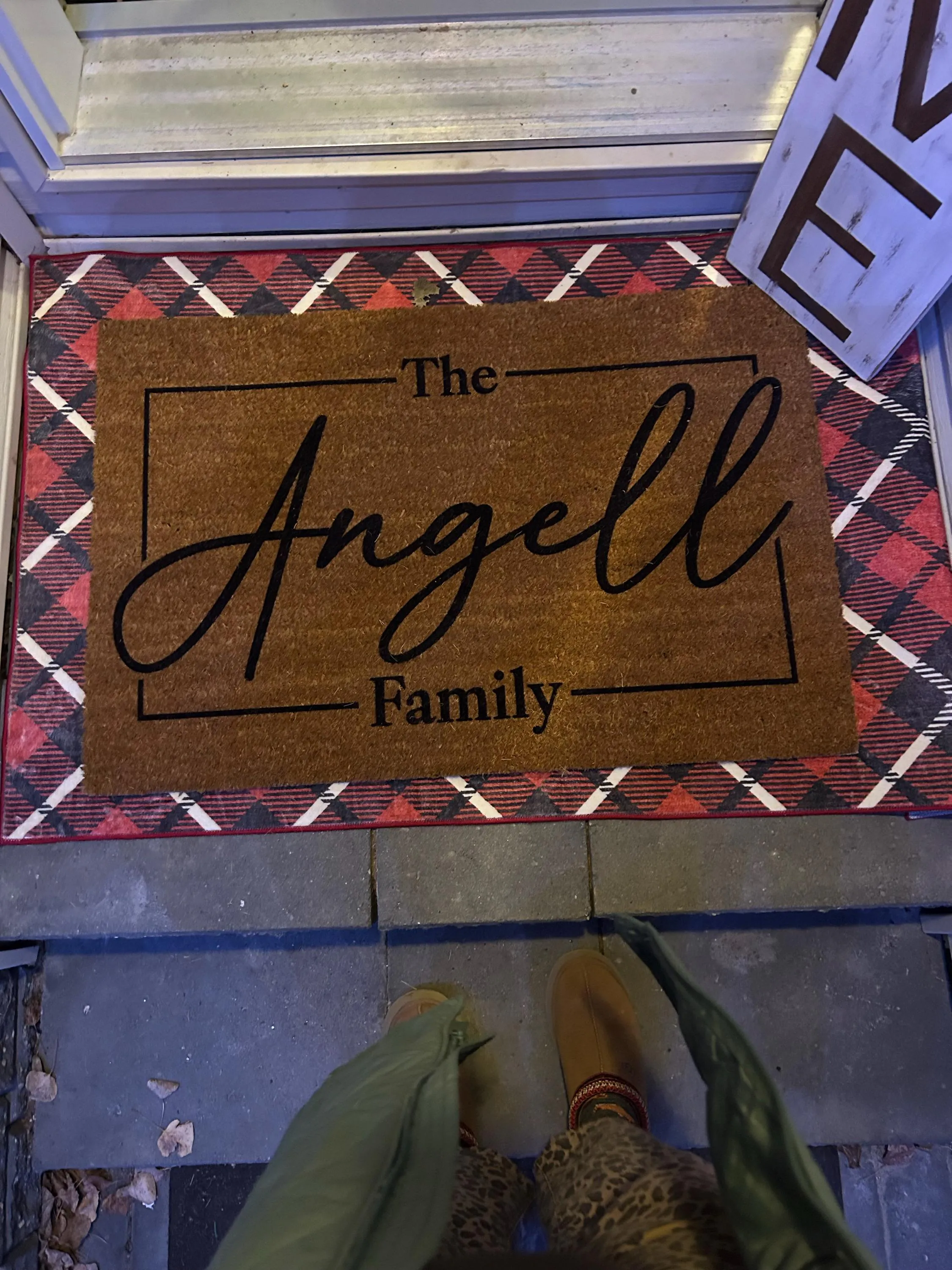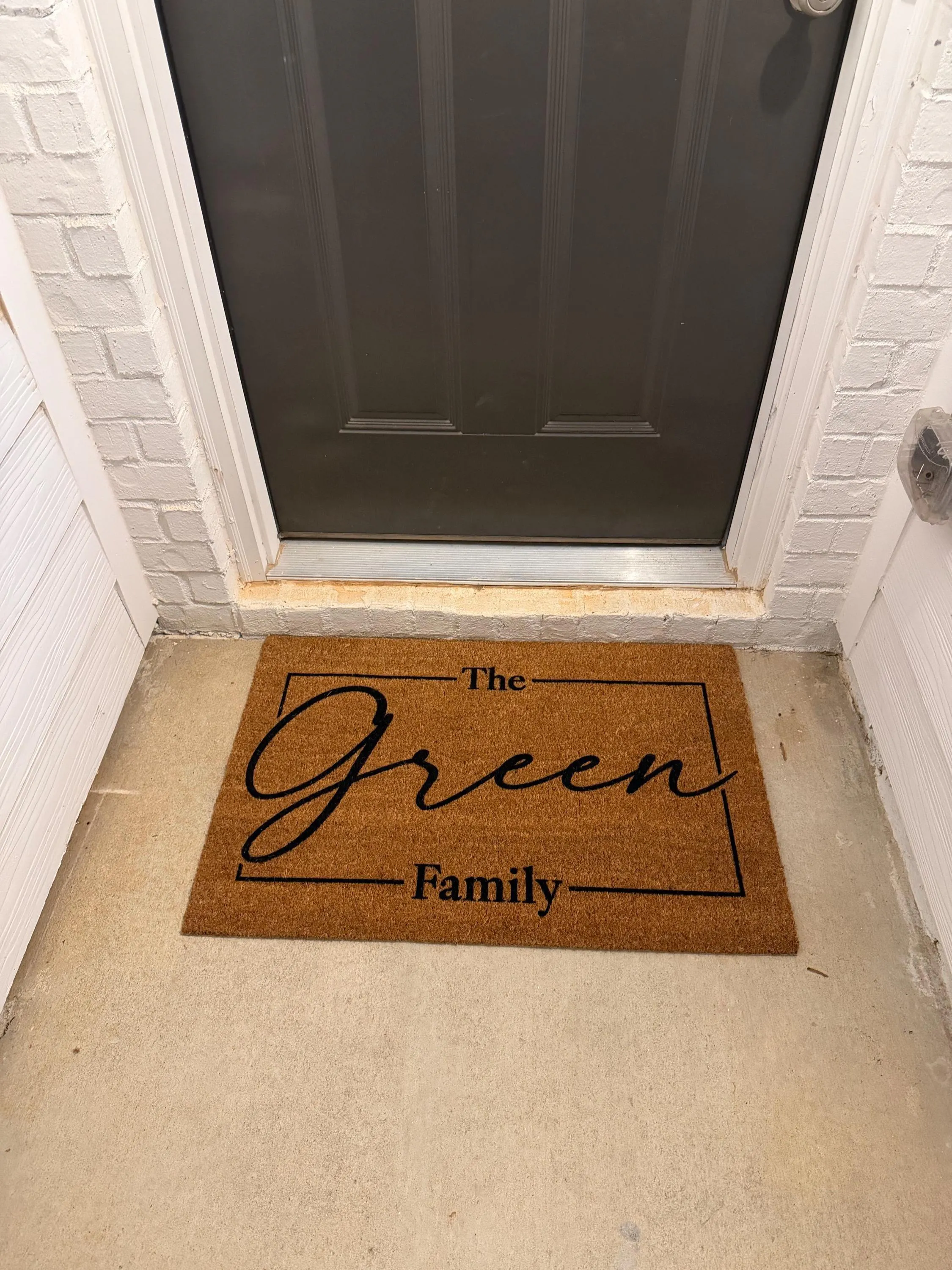 Constructed from resilient coconut fiber doormat material, this coir mat combines eco-friendly qualities with practical use. The latex backing doormat prevents slipping on hardwood, tile, or concrete surfaces, ensuring the mat remains secure. Sized to fit most standard doorways at 30 by 18 inches, this family name welcome rug offers versatile placement options both indoors and outdoors. Maintenance is simple—vacuum regularly with a hose attachment and avoid excess moisture to preserve its appearance.